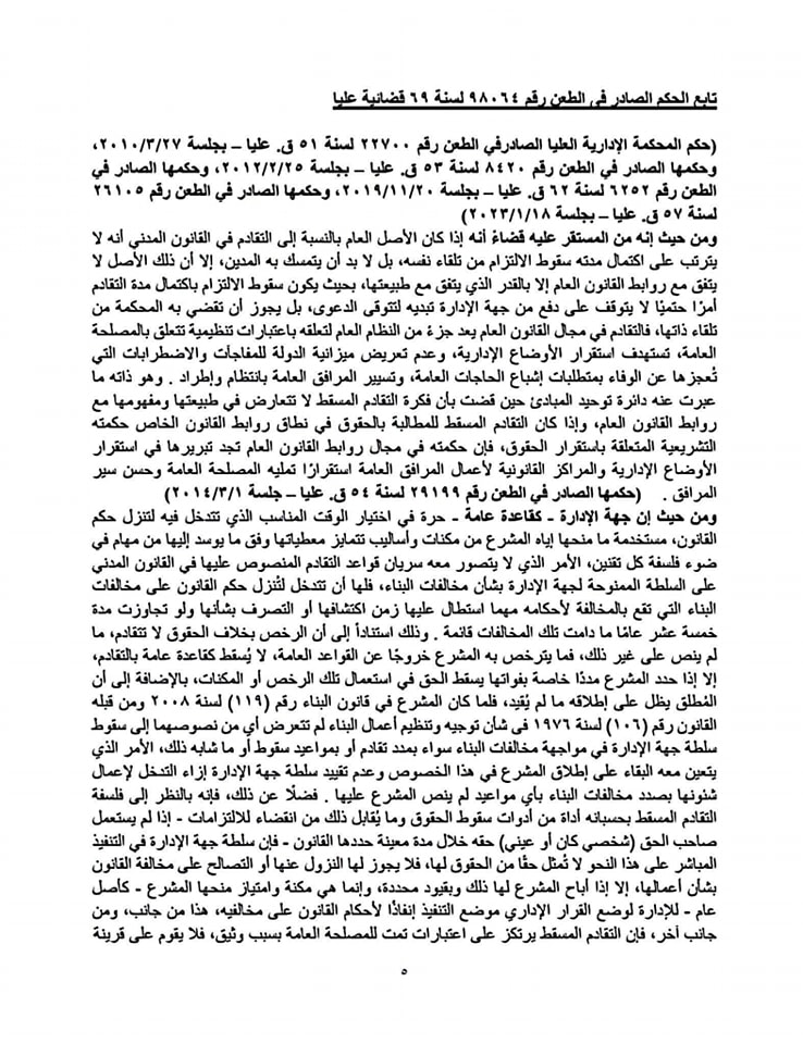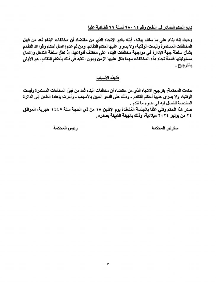 ⚖️ حكم دائرة توحيد المبادئ: مخالفات البناء لا تسقط بالتقادم