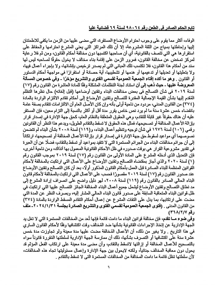 📌 مخالفات البناء لا تسقط بالتقادم.